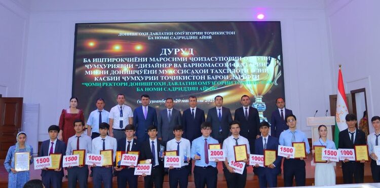 Дар доираи Рӯзи ҷавонони Тоҷикистон ва Солҳои рушди иқтисоди рақамӣ ва инноватсия эълон гардидани солҳои 2025-2030 дар Донишгоҳи давлатии омӯзгорӣ маросими ҷоизасупории Озмуни ҷумҳуриявии «Дизайнер ва барномасози беҳтарин» байни донишҷӯёни муассисаҳои таҳсилоти олии касбии Ҷумҳурии Тоҷикистон барои дарёфти «Ҷоми ректори Донишгоҳи давлатии омӯзгории Тоҷикистон ба номи Садриддин Айнӣ» баргузор гардид, хабар доданд ба АМИТ «Ховар» аз ин донишгоҳ.