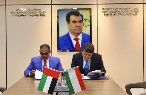 Санадро Вазири саноат ва технологияҳои нави Ҷумҳурии Тоҷикистон Шералӣ Кабир ва раиси департаменти аморати Рас-ал-Хаймаи Аморати Муттаҳидаи Араб оид ба савдо ва саноат Муҳаммад Ал-Мусаббеҳ Ал-Наимӣ имзо намуданд.